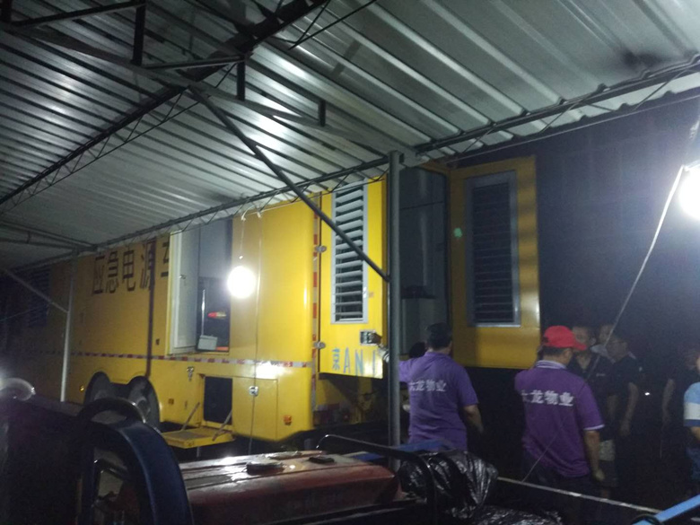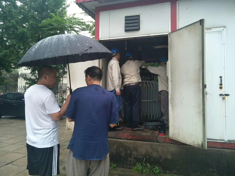 各项目部防汛小组成员迅速赶到各自负责的区域查看排水情况,对小区内的5000余个雨篦子进行疏通,并将安全隐患进行逐一排查。凌晨5点,因用电负荷大、电力设施老化,滨河小区内10栋楼538户居民出现断电情况。面对险情,大龙物业公司领导和专业维修人员第一时间赶赴事故现场,经排查确定停电原因系配电室箱变传感器发生故障。